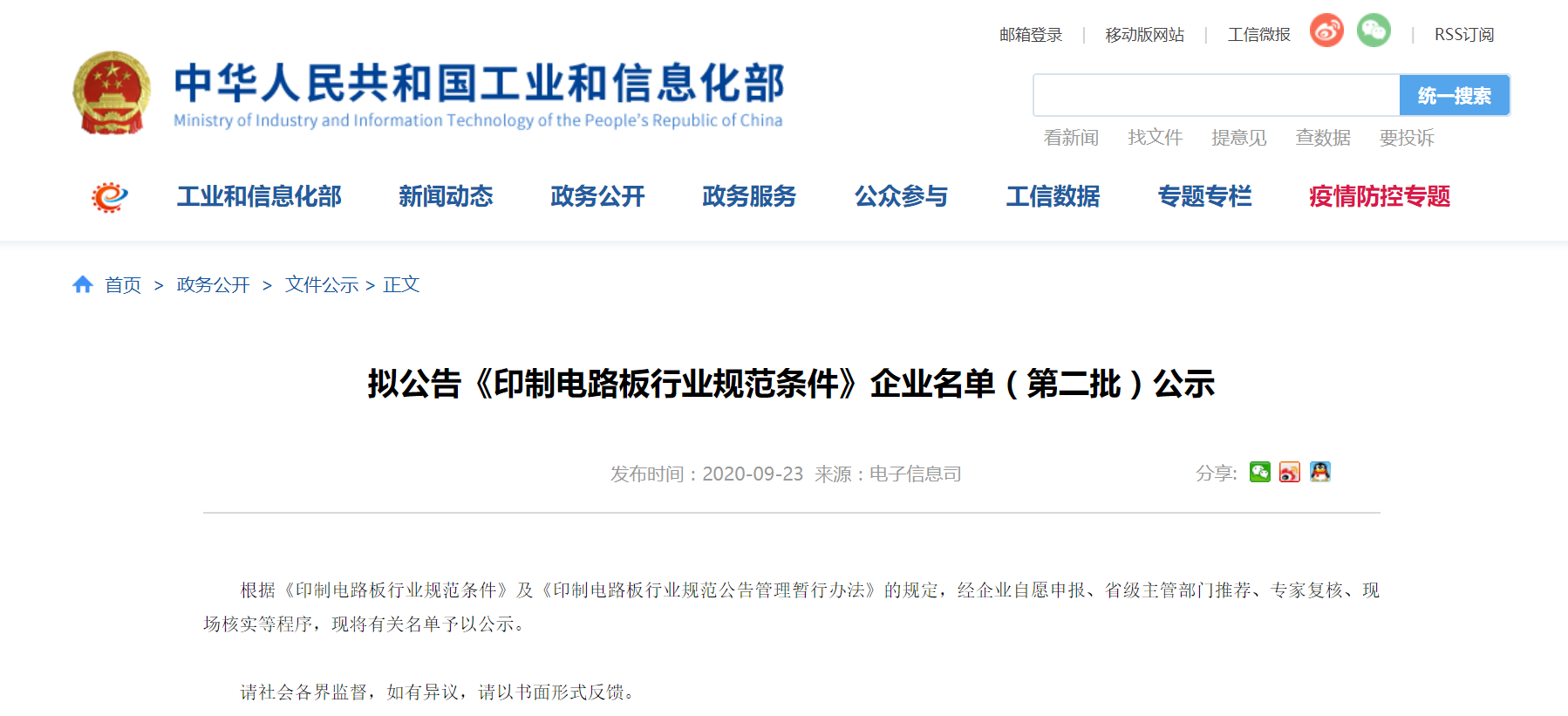2019年,國(guó)家工信部針對(duì)印制電路板行業(yè)出臺(tái)了《印制電路板行業(yè)規(guī)范條件》以及《印制電路板行業(yè)規(guī)范公告管理暫行辦法》政策(以下簡(jiǎn)稱(chēng)條件/辦法),鼓勵(lì)企業(yè)以自主申報(bào)、省級(jí)主管部門(mén)推薦等方式參與行業(yè)規(guī)范條件的申評(píng),并由印制電路板行業(yè)內(nèi)的專(zhuān)家評(píng)審團(tuán)隊(duì)進(jìn)行專(zhuān)業(yè)評(píng)審。2020年,珠海方正高密結(jié)合公司產(chǎn)能規(guī)模、技術(shù)能力、生產(chǎn)效率、安全生產(chǎn)及環(huán)保管理等實(shí)際情況,高標(biāo)準(zhǔn)達(dá)成“條件”中的相關(guān)評(píng)定指標(biāo),擬通過(guò)工信部第二批《印制電路板行業(yè)規(guī)范條件》的評(píng)審,9月23日已全網(wǎng)公示。截至10月14日,公示期滿(mǎn)。