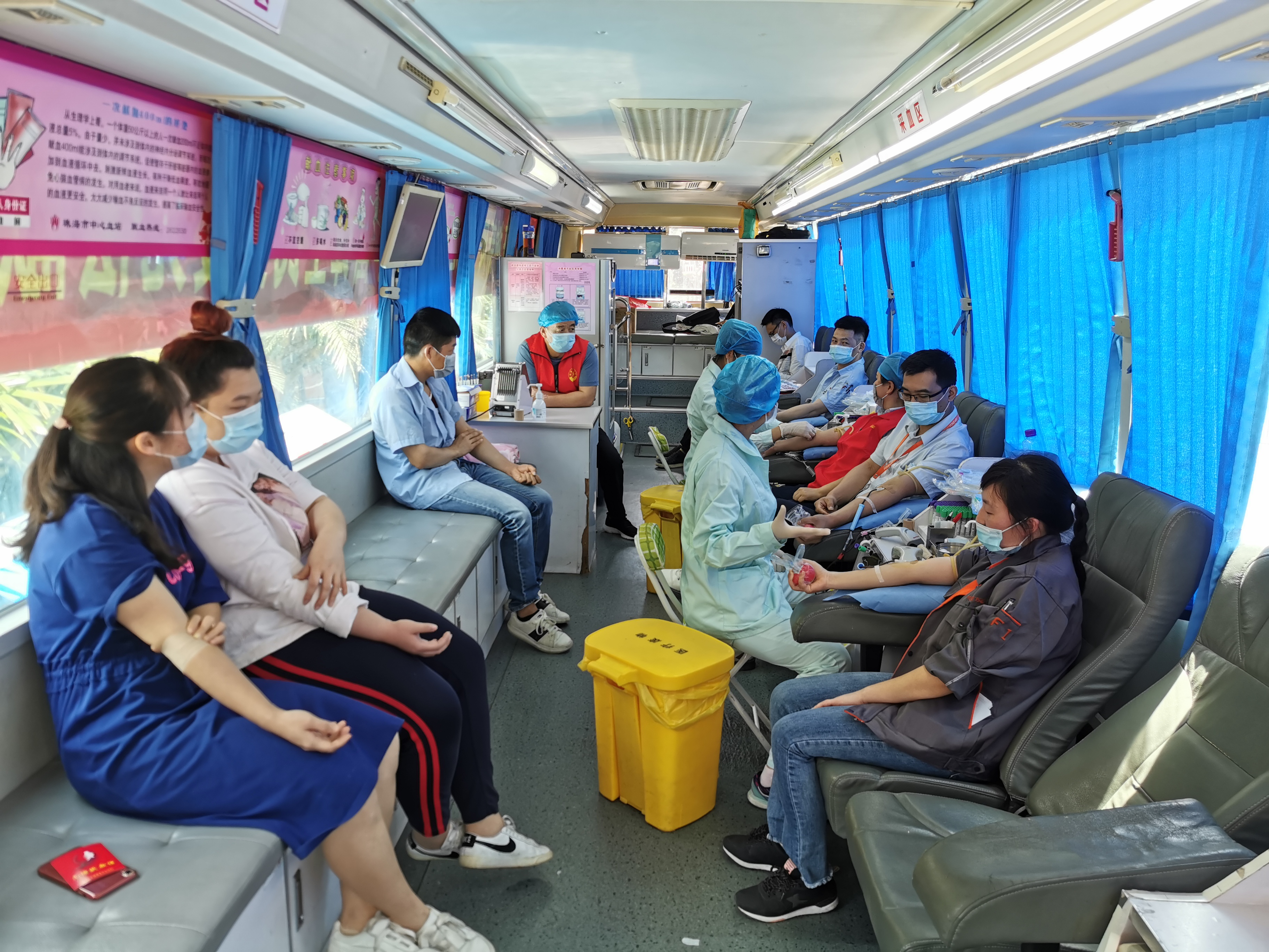 4月27日、29日上午,珠海市中心血站的工作人員和志愿者分別來到富山園區(qū)和多層,開展愛心獻血公益活動。